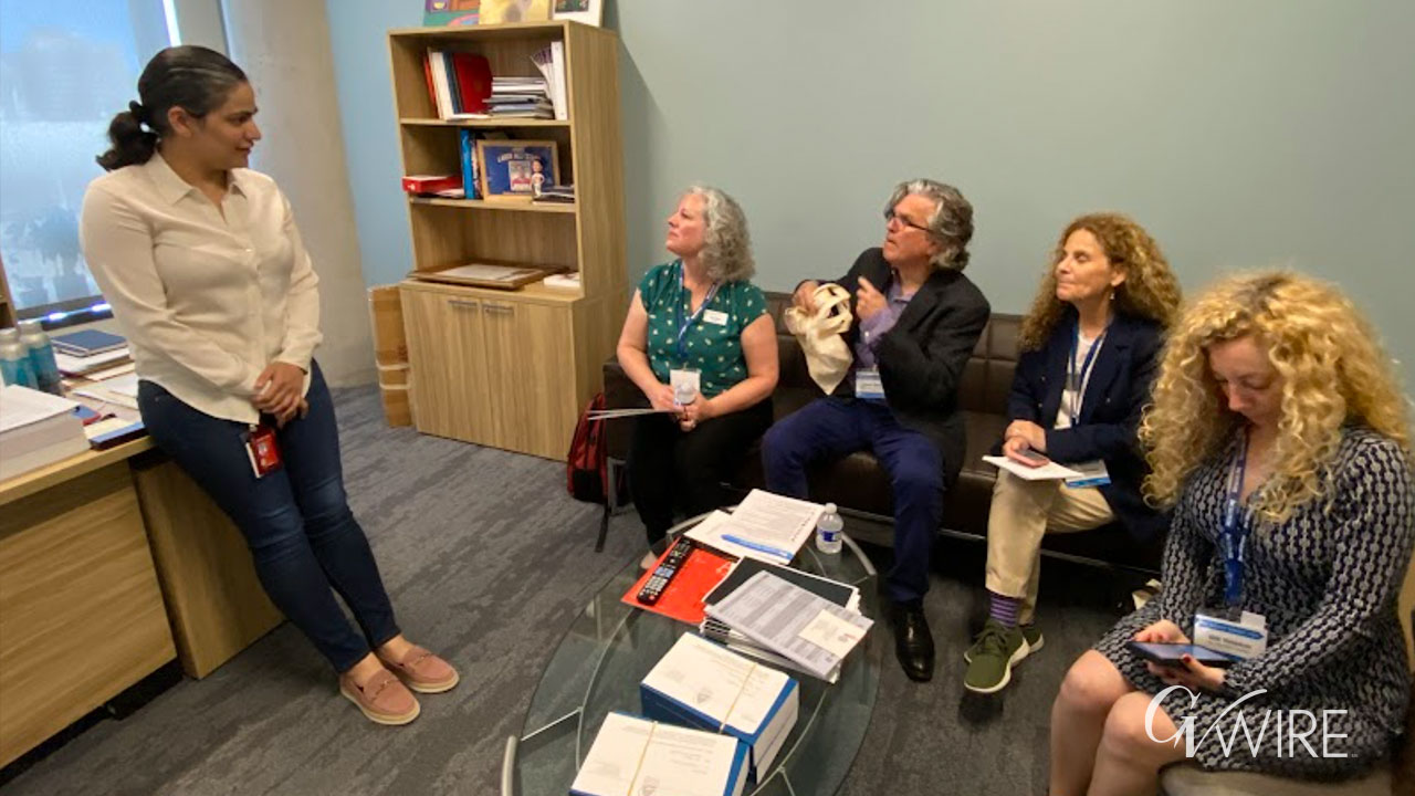 State Sen. Aisha Wahab (left) meets with members from JPAC, a Jewish-issues advocacy group, on Wednesday, May 15, 2024, in Sacramento. (GV Wire/David Taub)