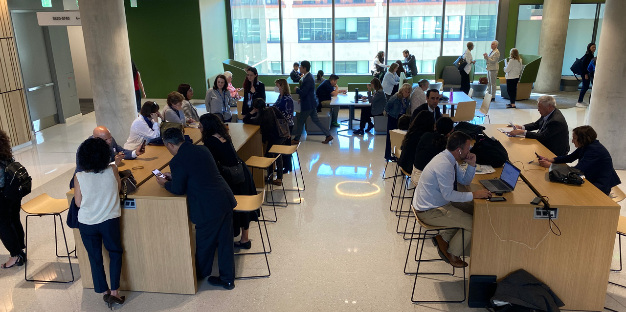 While each floor had plenty of tables and chairs for lobbyist to wait and lounge, no one was in love with the elevator system. There are no buttons inside the cars. Floors must be selected on the outside.