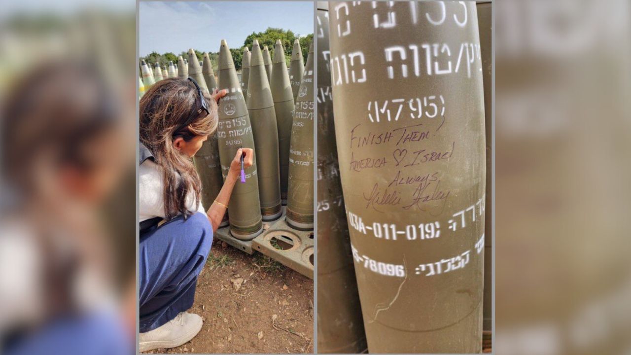Haley, who lost the 2024 Republican nomination to Donald Trump, visited a community attacked by Hamas on Oct. 7, just 24 hours after an Israeli strike killed 45 Palestinians at a displaced encampment. She also wrote “America ♥️ Israel!” on the shell.