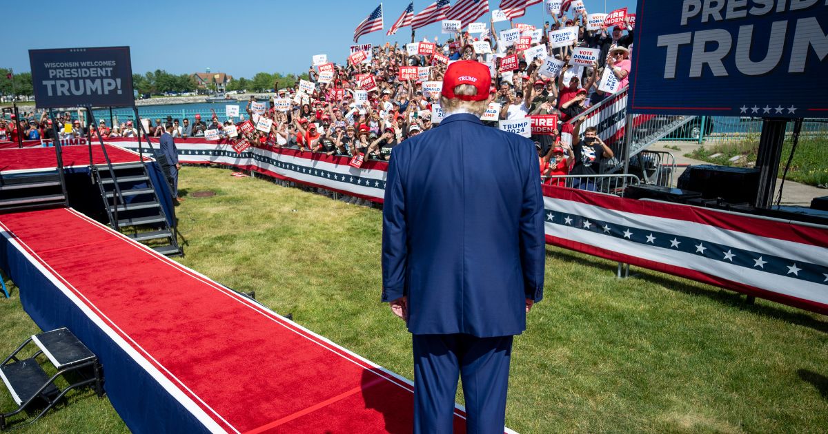 Former President Donald Trump, the presumed Republican presidential nominee, during a campaign rally at the Racine Festival Park in Racine, Wis., Tuesday, June 18, 2024. (Doug Mills/The New York Times)