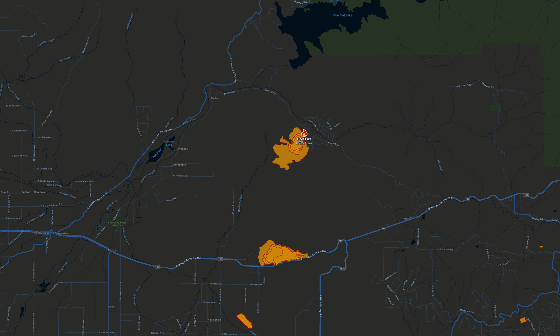 - Flash Fire: Situated at Kings Canyon and Cove Road, this fire has spread to 170 acres and remains 0% contained.