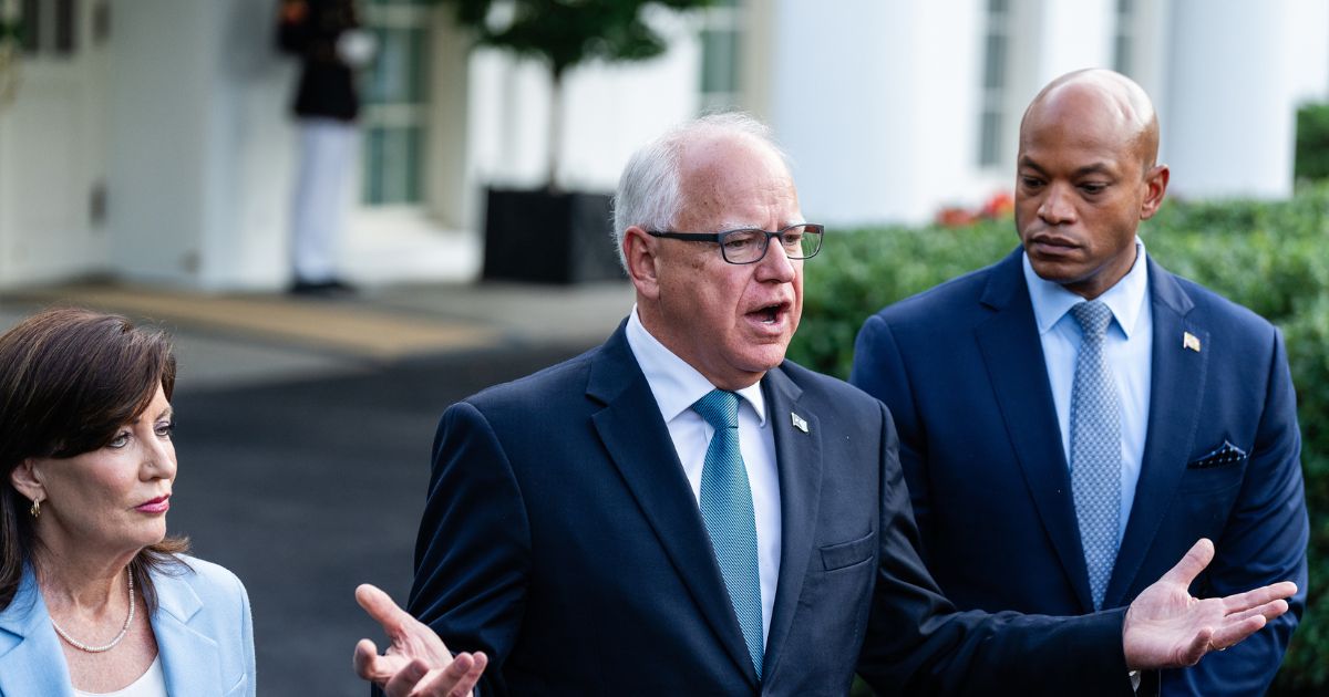 Minnesota Gov. Tim Walz speaks to reporters after meeting with President Joe Biden, at the White House in Washington, on July 3, 2024. As governor, Walz has enacted policies to secure abortion protections, provide free meals for schoolchildren, allow recreational marijuana and set renewable energy goals. (Eric Lee/The New York Times)
