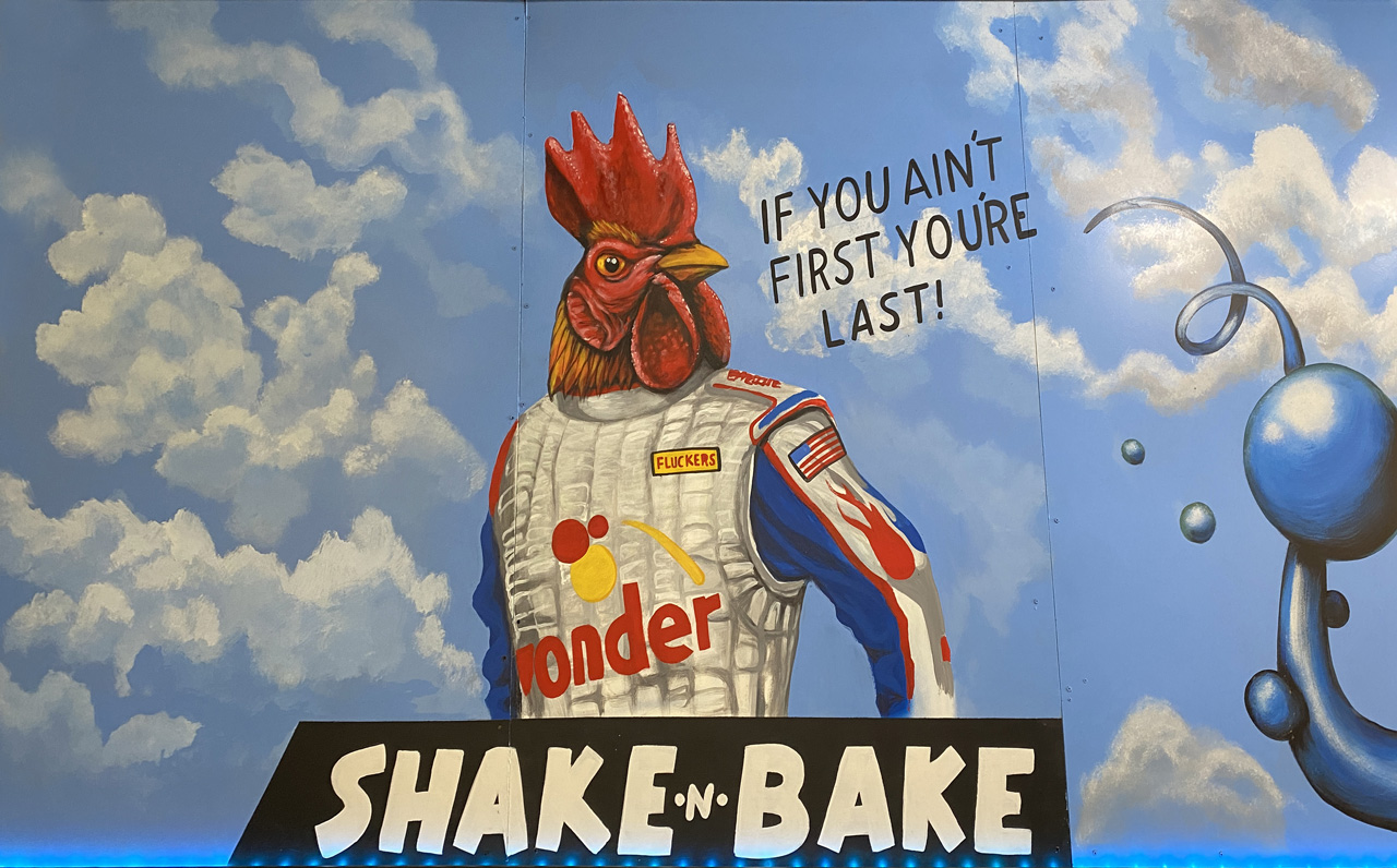 Fluckers Hot Chicken does have a unique vibe. Its walls feature murals of chickens in familiar scenes from movies like “Step Brothers,” “Talladega Nights: The Ballad of Ricky Bobby,” and “Meet the Fockers.”