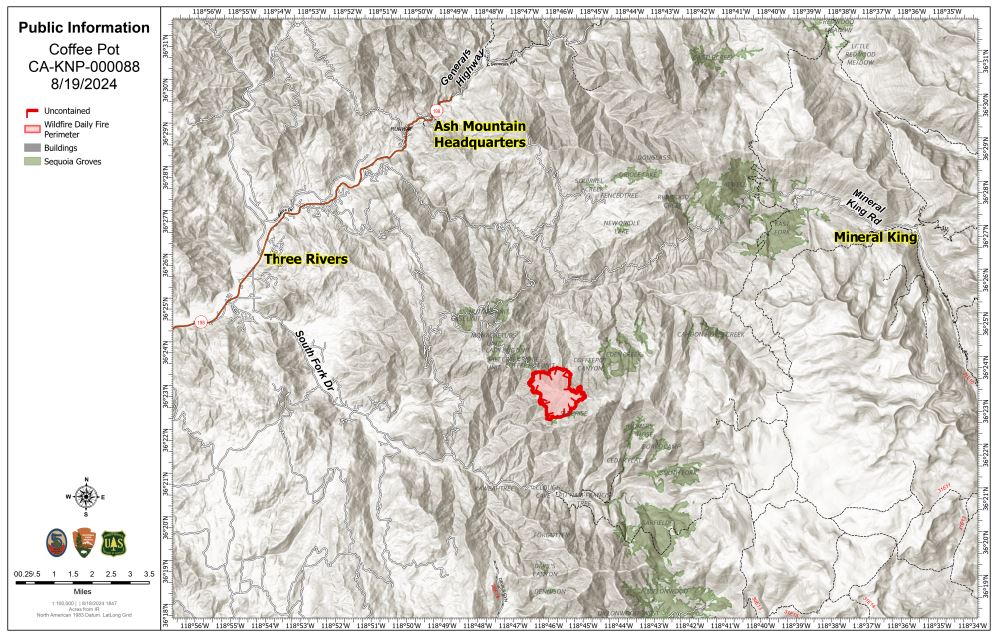 CalFire Tulare reported on Facebook that the fire has continued to expand, moving slowly down steep terrain. The fire has been expanding, fueled by large burning logs rolling downhill and dry conditions on the rugged landscape.