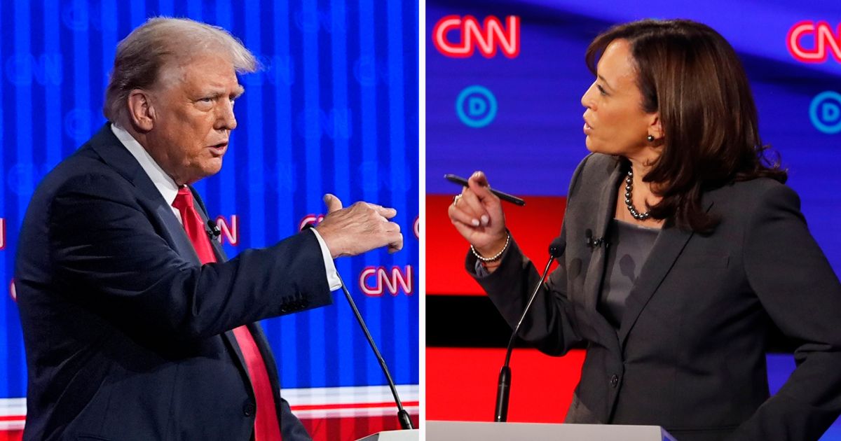 This combination photo shows Republican presidential candidate former President Donald Trump speaking during a presidential debate, June 27, 2024, in Atlanta, left, and Sen. Kamala Harris, D-Calif., speaking during a Democratic presidential primary debates, July 31, 2019, in Detroit. (AP Photo)