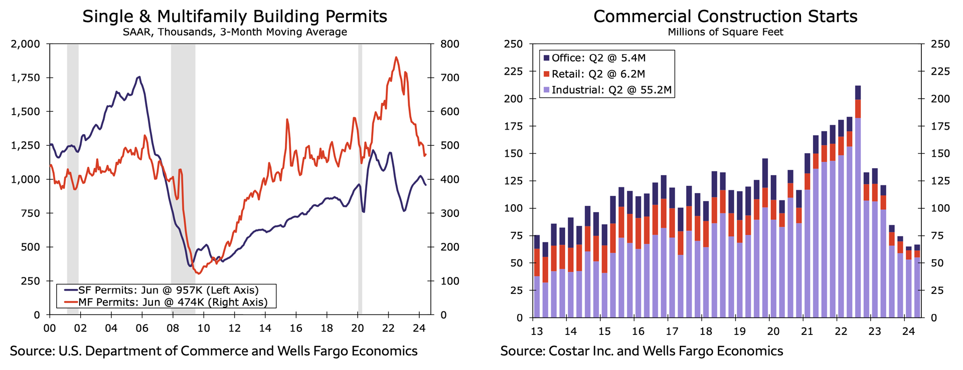 Mortgage lenders have already built in lower-rate expectations into the price they charge borrowers for home loans. Mortgage rates dropped 40 points from mid-July to the beginning of August. Wells Fargo predicts a full 200-point drop (e.g. 6.5% to 4.5%), pushing buyer demand, builder confidence, and a return of residential investment.