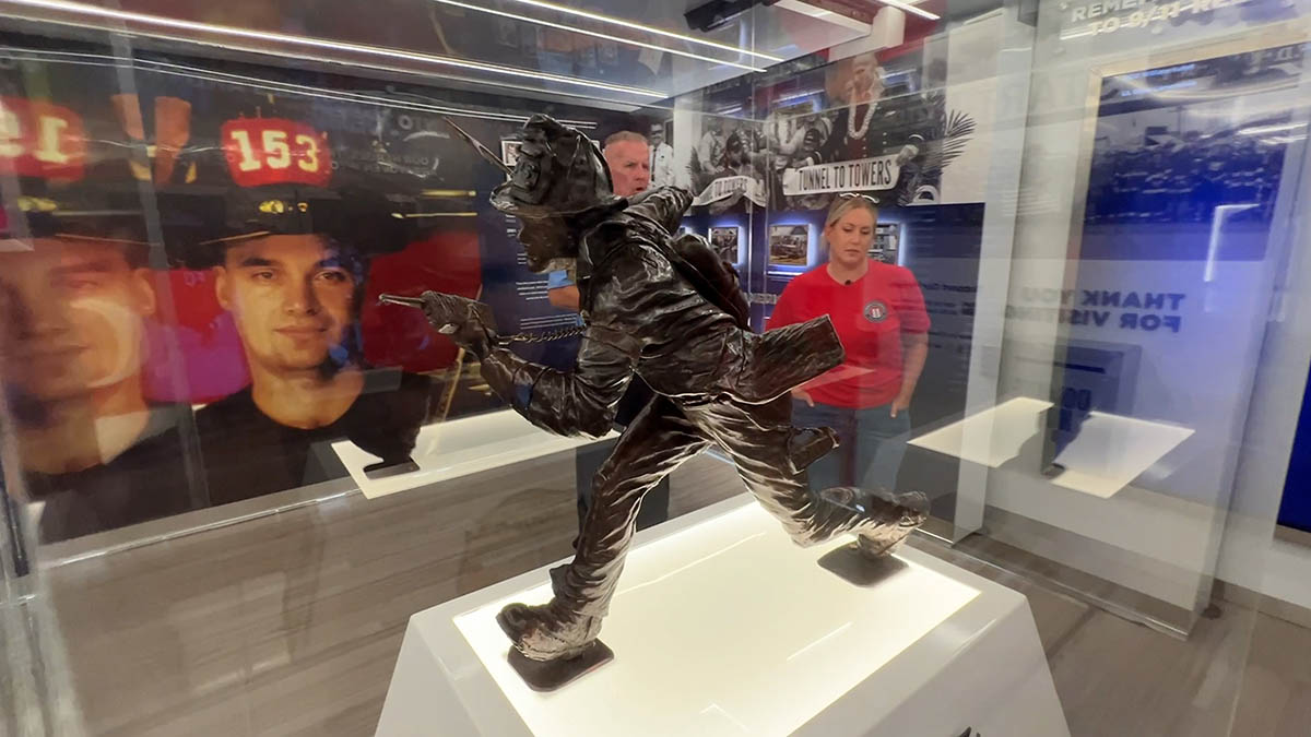 The Tunnel to Towers Foundation, named after firefighter Stephen Siller’s heroic actions on 9/11, runs the exhibit. Puckett recounts Siller’s story: “Stephen had worked the night tour, and he got off at 9 a.m. that morning. He was on his way home… and the north tower had been attacked. He turned around and came back.”