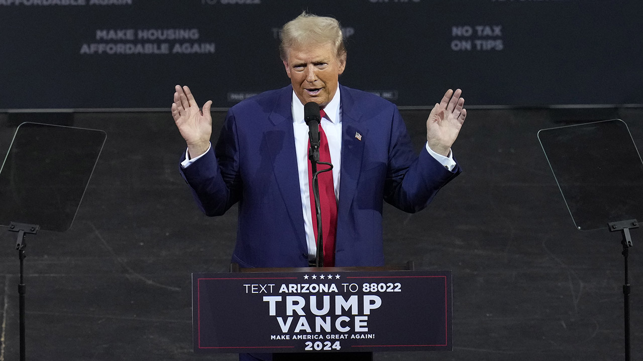 Trump is scheduled to hold what’s being billed as a news conference at his Los Angeles-area golf club. He’ll speak at the seaside club perched on a cliff overlooking the Pacific Ocean before heading to northern California for a fundraiser, followed by a rally in Las Vegas, the largest city in swing state Nevada.