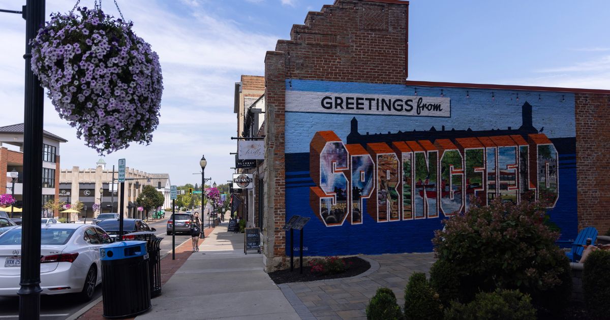 A “Greetings from Springfield” mural in Springfield, Ohio, Aug. 27, 2024. Residents of the Ohio city where Donald Trump has baselessly insisted that Haitian immigrants are eating their neighbors’ pets expressed concern on Thursday, Sept. 19, 2024, after Trump publicly promised to visit in two weeks. (Maddie McGarvey/The New York Times)