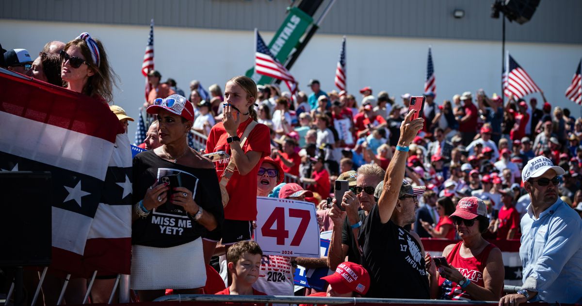 Rally attendees await the arrival of former President Donald Trump, the Republican nominee for president, in Wilmington, N.C., on Saturday, Sept. 21, 2024. Trump said in an interview broadcast on Sunday that he did not think he would run again in 2028 if he lost this year. (Haiyun Jiang/The New York Times)