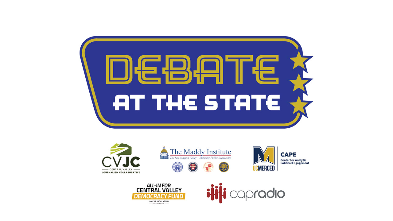 The debate is being sponsored by the Central Valley Journalism Collaborative, The Maddy Institute and UC Merced Cape Center. The debate will be broadcast live on CapRadio (91.3 FM in Modesto/Stanislaus County) and KVPR (89.3 FM Merced and Fresno).