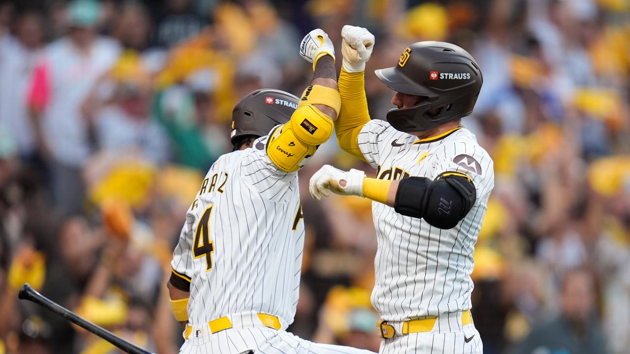 Manny Machado added a two-run double with the bases loaded and Jackson Merrill, a top contender for NL Rookie of the Year, followed with a two-run triple as the sellout crowd of 47,705 — the largest in Petco Park history — roared.