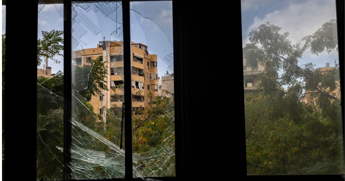 A broken window at the Saint Therese Medical Center in Beirut, on Saturday, Oct. 12, 2024. (Diego Ibarra Sanchez/The New York Times)