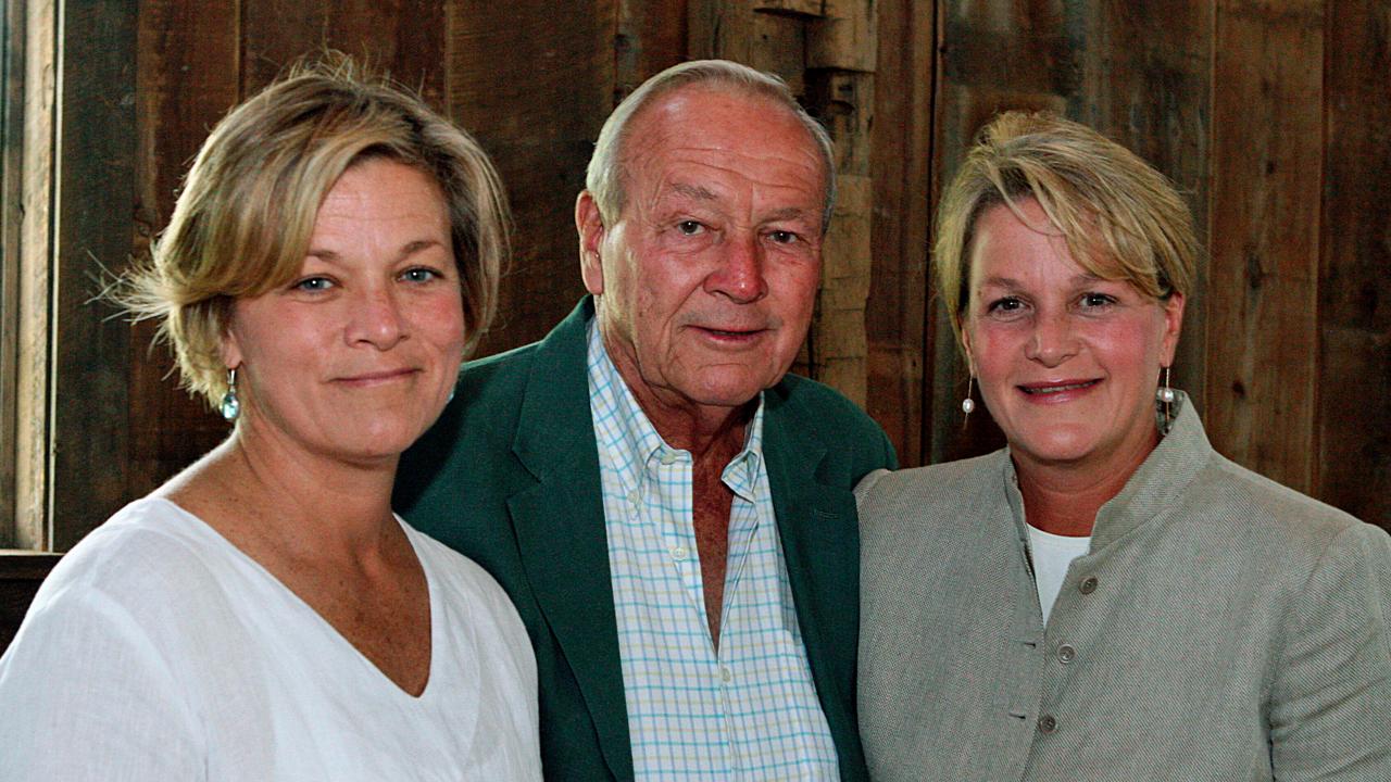 Arnold Palmer, center, is seen with his daughters, Peggy Palmer, left, of Durham, N.C., and Amy Saunders, of Orlando, Fla., inside the barn of the Winnie Palmer Nature Reserve, in Latrobe, Pa., during the dedication of the reserve June, 30, 2007. (AP/Kim Stepinsky/Pittsburgh Tribune-Review)