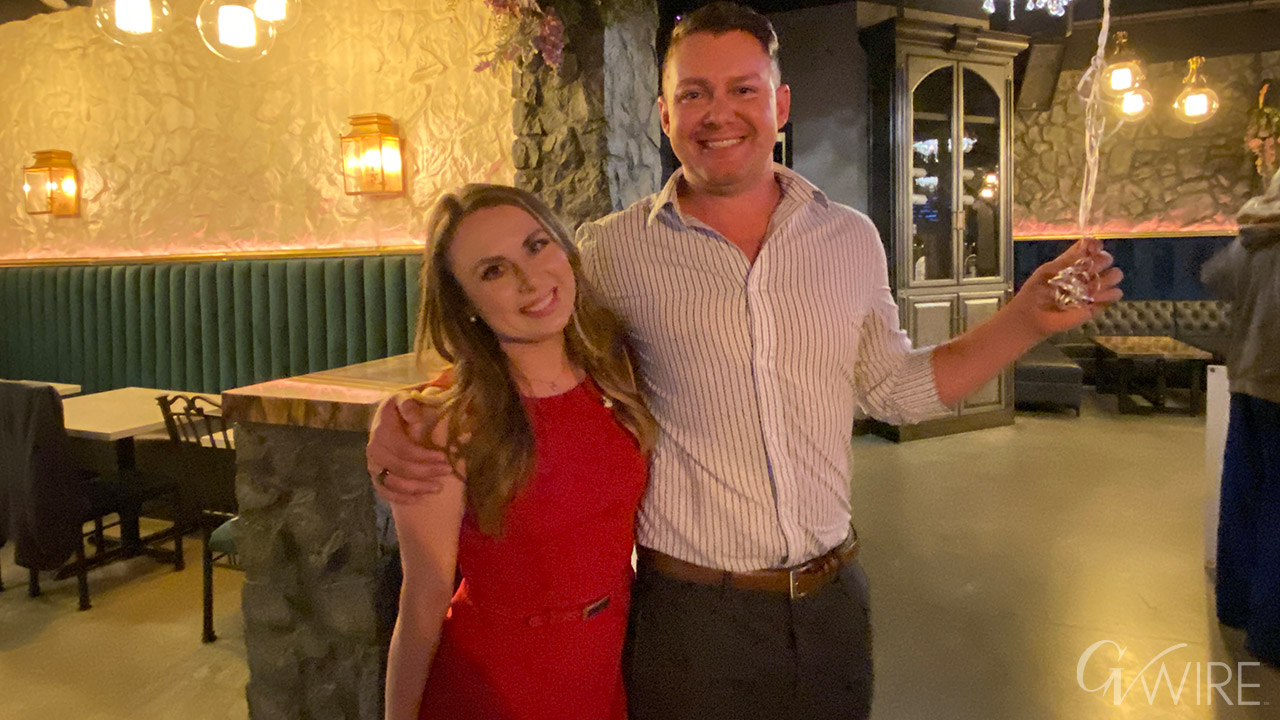 Nick Richardson (right) and fiance Kelsey Schulteis celebrate at his election night party on Nov. 5. (GV Wire/David Taub)