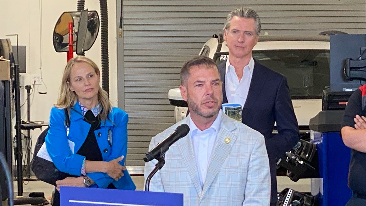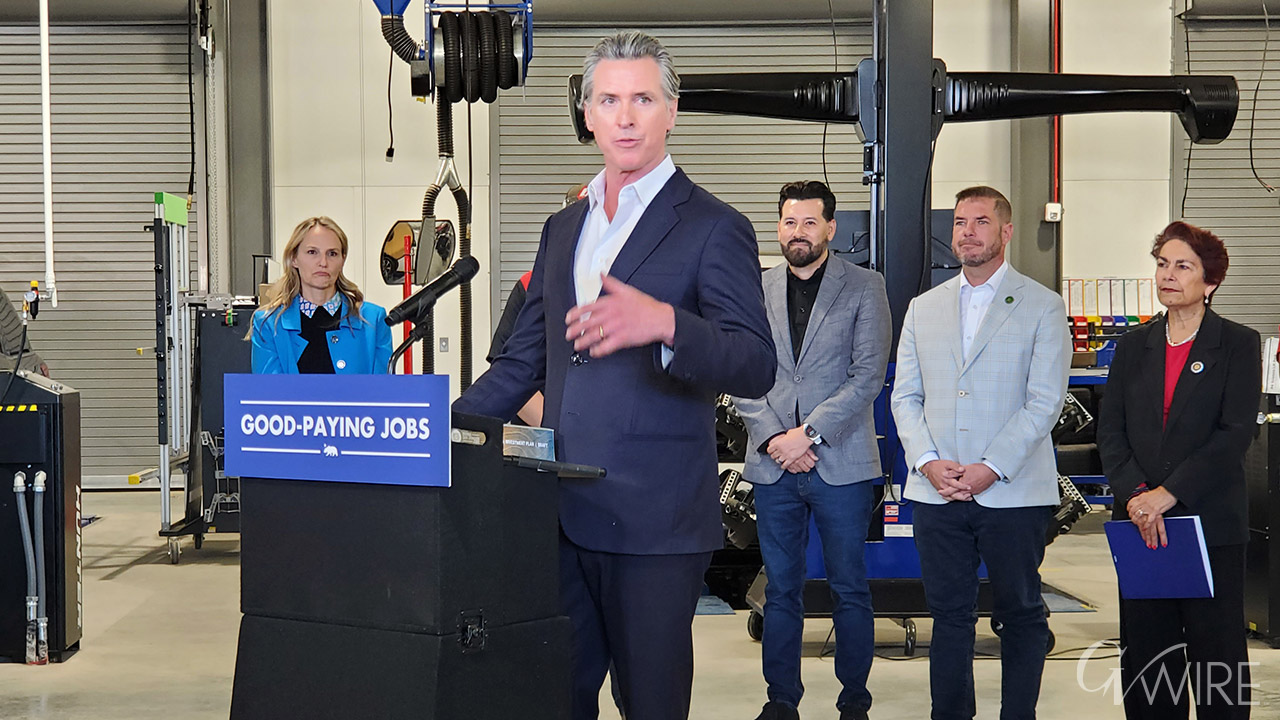 Gov. Gavin Newsom, at a stop in Fresno on Thursday, said that funding is still on target.