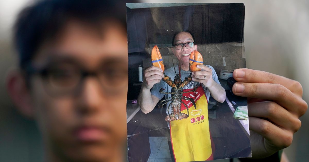 Harrison Li holds a photo of his father, Kai Li, as he poses for a photo, Jan. 23, 2024, in Palo Alto, Calif. (AP File)