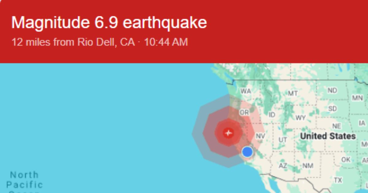 A 6.9 earthquake near Ferndale, California, triggered widespread tremors and a tsunami warning, with aftershocks felt as far as San Francisco. (Google Screenshot)