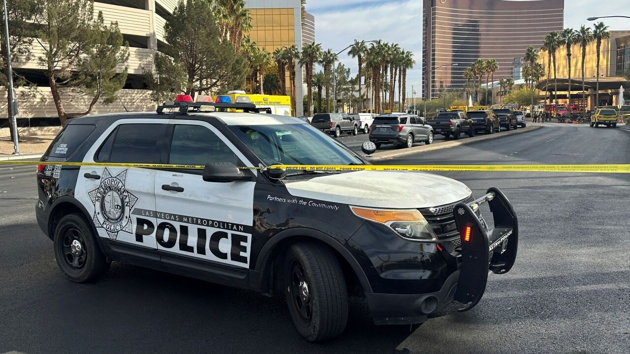 Police block the area after a Tesla Cybertruck driven driven by a U.S. Army member exploded outside the lobby of President-elect Donald Trump's hotel Wednesday, Jan. 1, 2025. (AP/Ty ONeil)