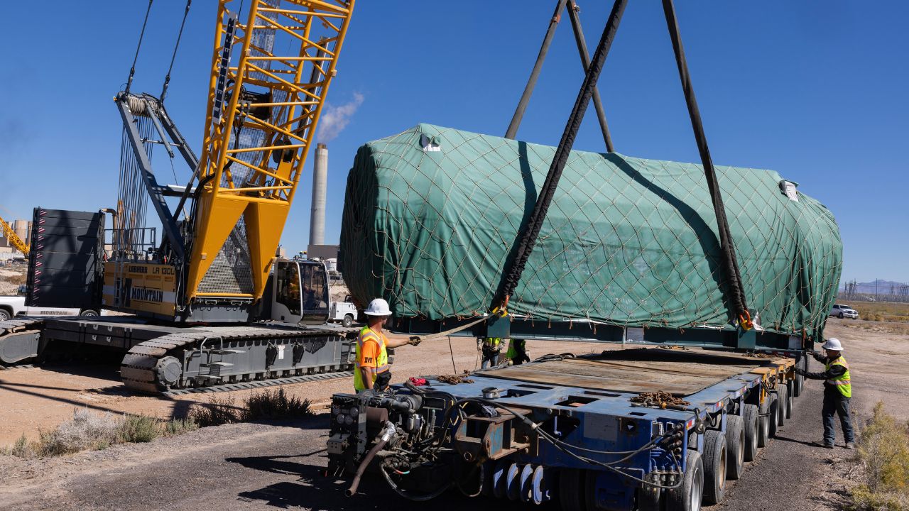 Workers move an electrolyzer, which generates hydrogen from water using electricity, at a storage facility in Delta, Utah on Oct. 5, 2023. The Biden administration on Jan. 3, 2025 made final its long-awaited plan to offer billions of dollars in tax credits to companies that make hydrogen, in the hopes of building up a new industry that might help fight climate change. (Nina Riggio/The New York Times)