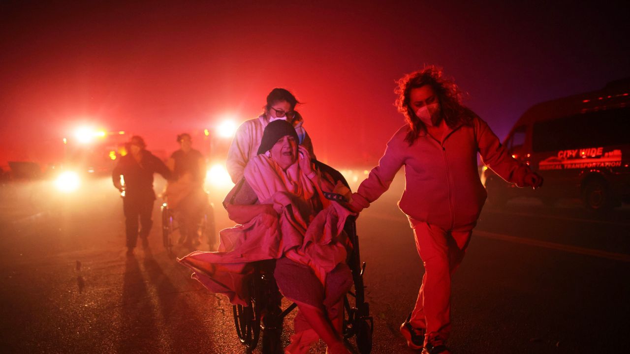 Flames that broke out Tuesday evening near a nature preserve in the foothills northeast of LA spread so rapidly that staff at a senior living center had to push dozens of residents in wheelchairs and hospital beds down the street to a parking lot. Residents — one as old as 102 — waited in their bedclothes as embers fell around them until ambulances, buses and construction vans arrived to take them to safety.