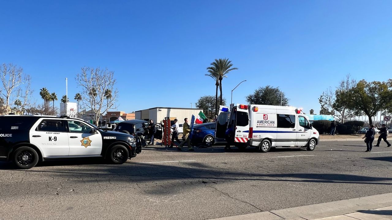 The collision involved three vehicles and resulted in two individuals being hospitalized. Fresno police reported that the injuries were not life-threatening.