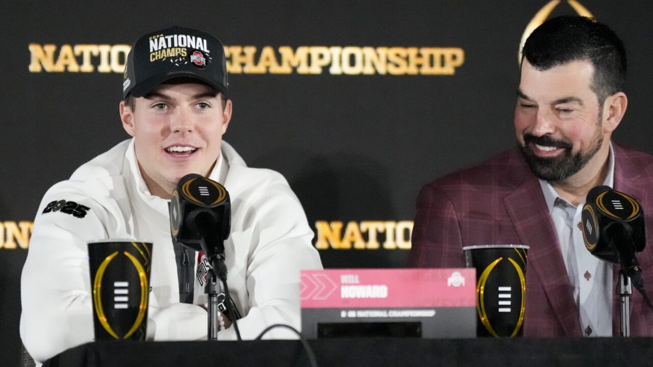 Day praised his players, saying they deserved to be mentioned with the greatest teams in Ohio State history. Quarterback Will Howard, wearing a “National Champs” cap, and linebacker Cody Simon joined Day at Tuesday’s College Football Playoff champions news conference.