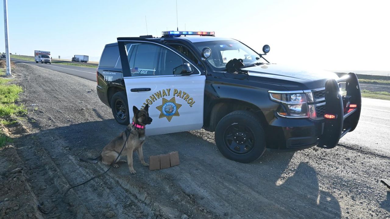 A CHP K-9 unit's traffic stop on I-5 in Fresno County uncovered six pounds of fentanyl, leading to a $163,000 drug bust. (CHP)