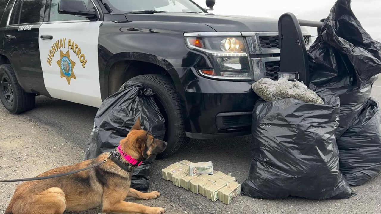 A California Highway Patrol K-9 officer seized 100 pounds of processed marijuana and $160,000 in cash during a traffic stop on Saturday on I-5 near Santa Nella Road, the CHP said in a statement.