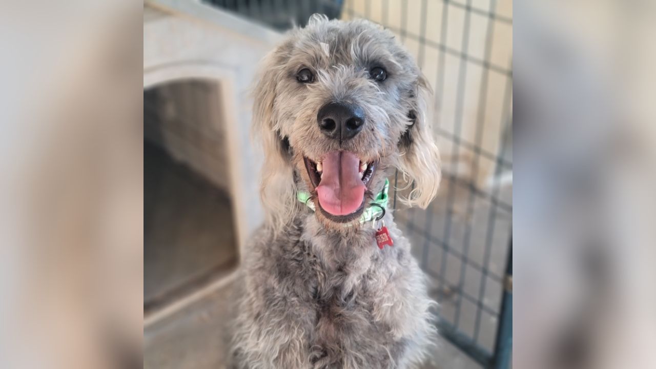 Wolfie, a 2- to 3-year-old mix of Standard Poodle and Labrador, is looking for a new home after spending over a month living in an open field.