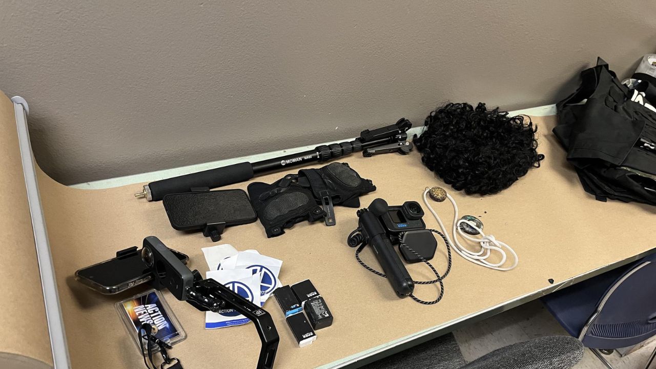Both men were wearing black tactical vests with patches designed to resemble those of law enforcement and immigration officials.