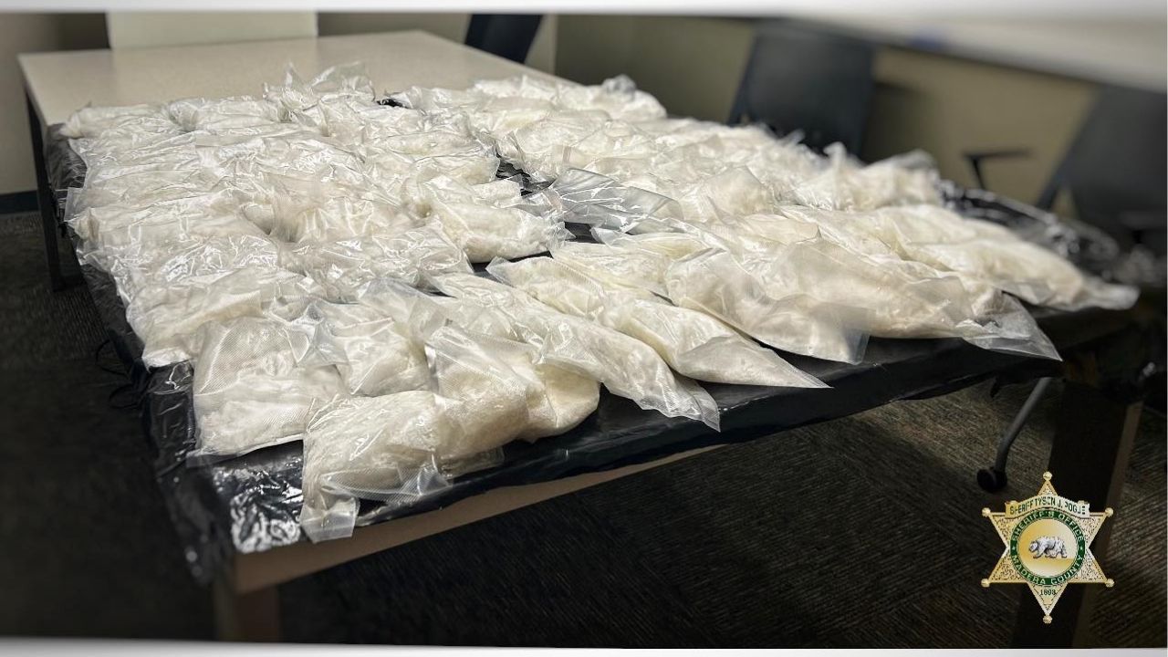 Two Southern California men were arrested in Madera County after authorities seized 80 pounds of methamphetamine during a vehicle search on Thursday, March 20, 2025. (Madera County SO)