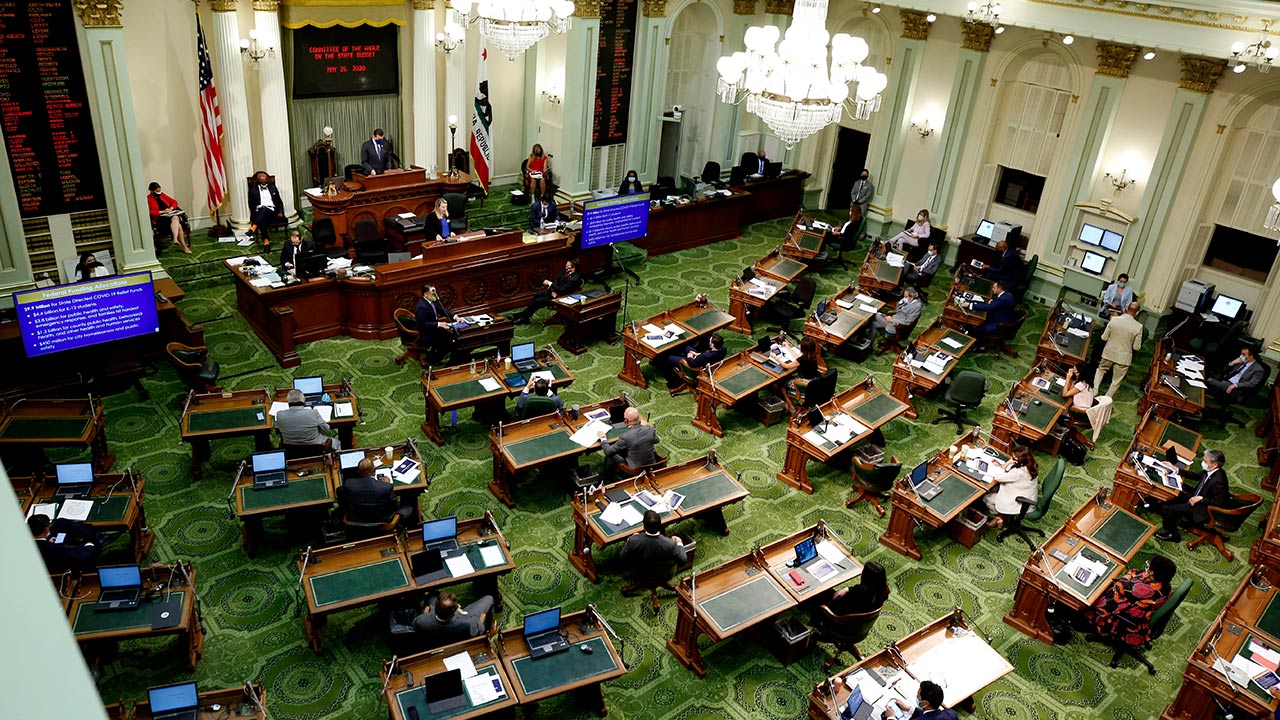 Members of the state Assembly meet at the Capitol May 26, 2020, in Sacramento, Calif. The California Assembly passed a bill increasing penalties for soliciting sex from 16- and 17-year-olds, with exceptions for close-in-age cases. (AP File)