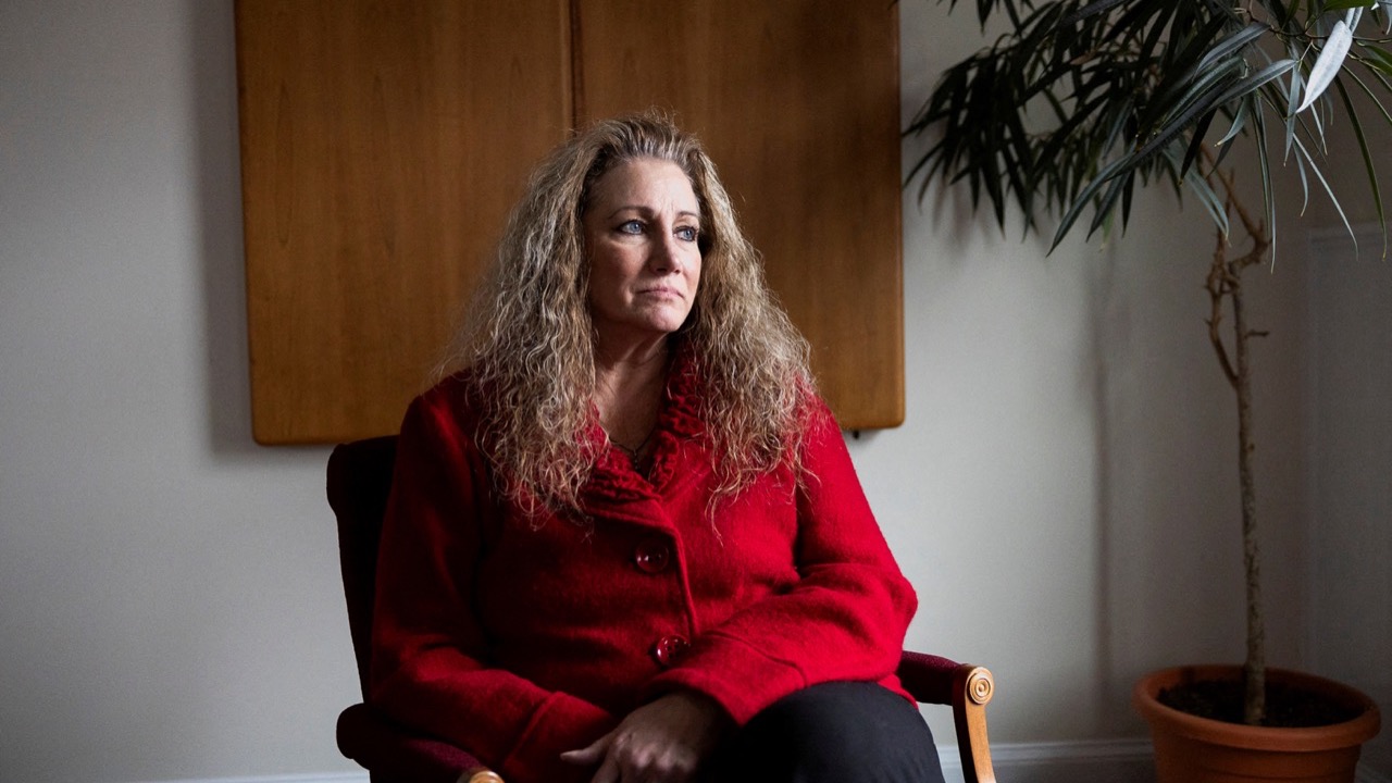 FILE PHOTO: Marlean Ames sits for a portrait at the law office of Edward Gilbert, her lawyer, in Akron, Ohio, U.S., February 13, 2025. REUTERS/Megan Jelinger/File Photo