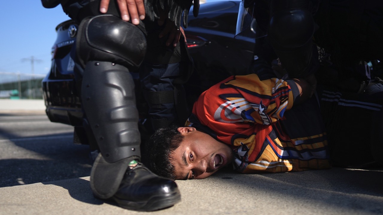 The protests began Friday after federal immigration raids arrested dozens of workers in Los Angeles. Protesters blocked a major freeway and set cars on fire over the weekend, and police responded with tear gas, rubber bullets and flash-bang grenades.