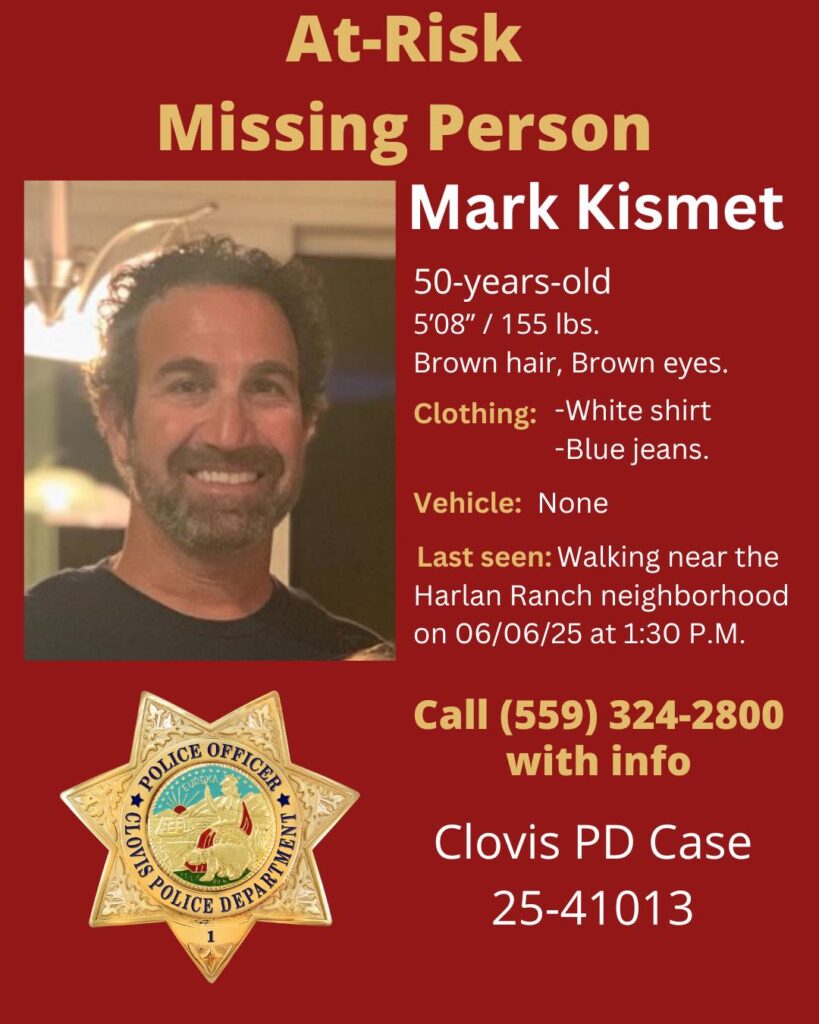 Mark Kismet, 50, who is considered at-risk went missing on Friday, June 6, 2025, in Clovis near Harlan Ranch is still missing according to the Clovis Police Department on Thursday, June 12, 2025. (Clovis PD)