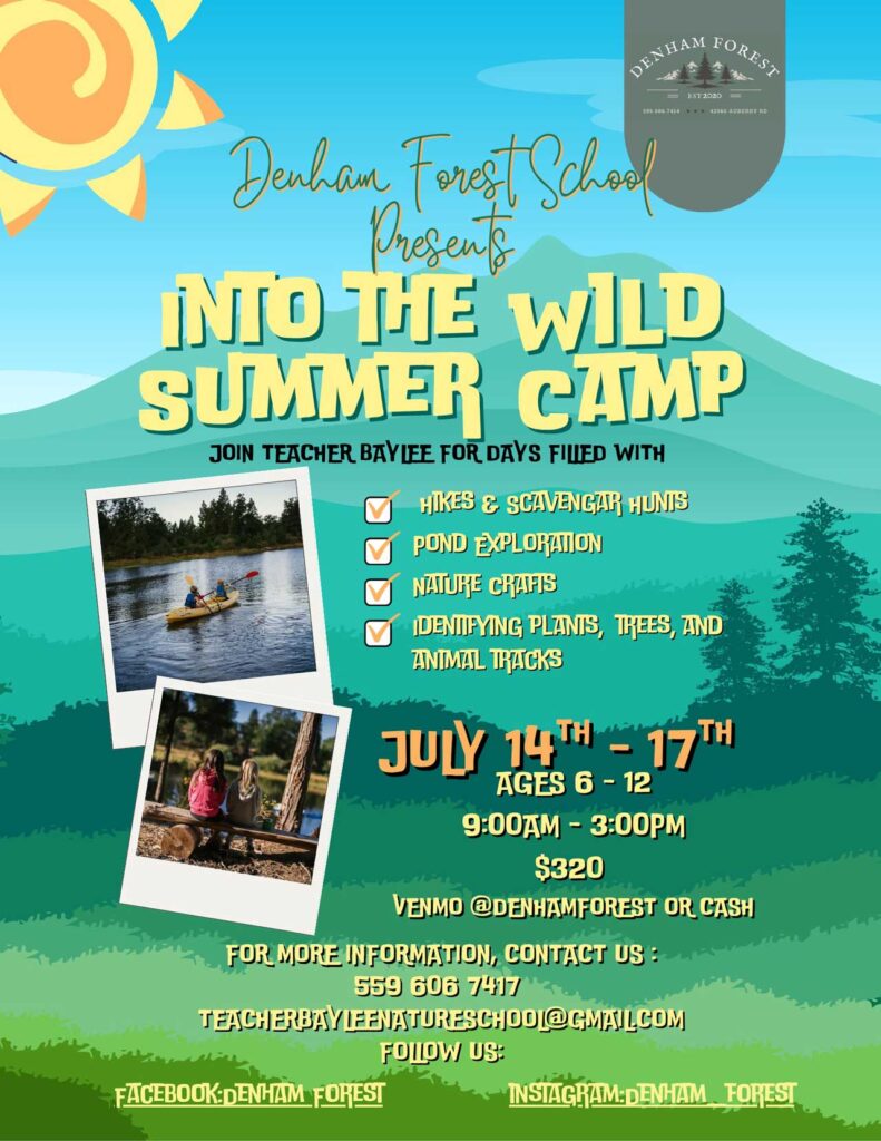 The camp will run July 14 to 17 from 9:00 a.m. to 3:00 p.m. daily. Organizers may add additional weeks based on community interest. The camp cost is $320. You can contact the camp at (559) 606-7414 or by email at teacherbayleenatureschool@gmail.com.