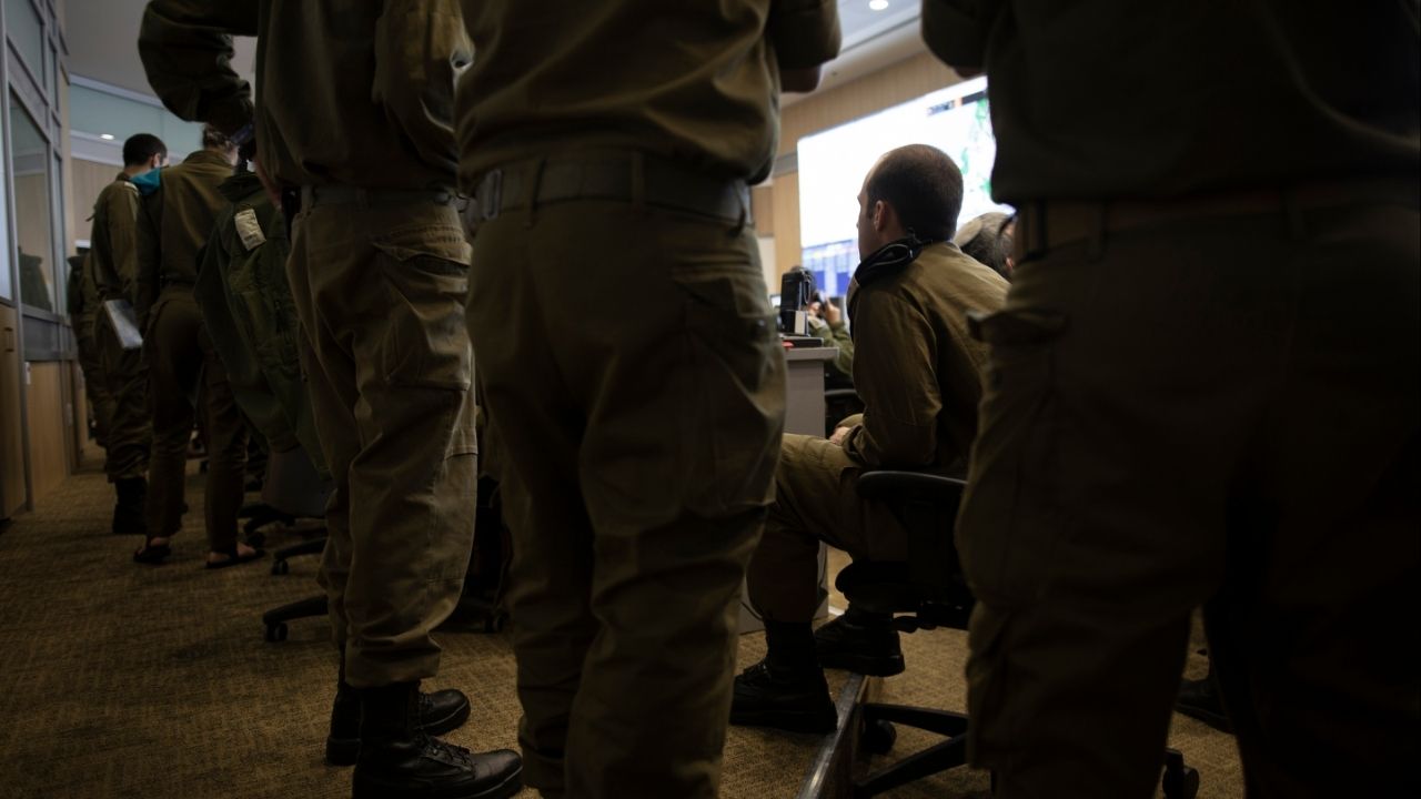 Officials inside the Israeli Army’s underground command bunker in Tel Aviv, Israel, on Friday, May 21, 2021. A former leader in Israel’s top commando unit acknowledged that the distance from the battlefield could create indifference to human lives. (Dan Balilty/The New York Times)
