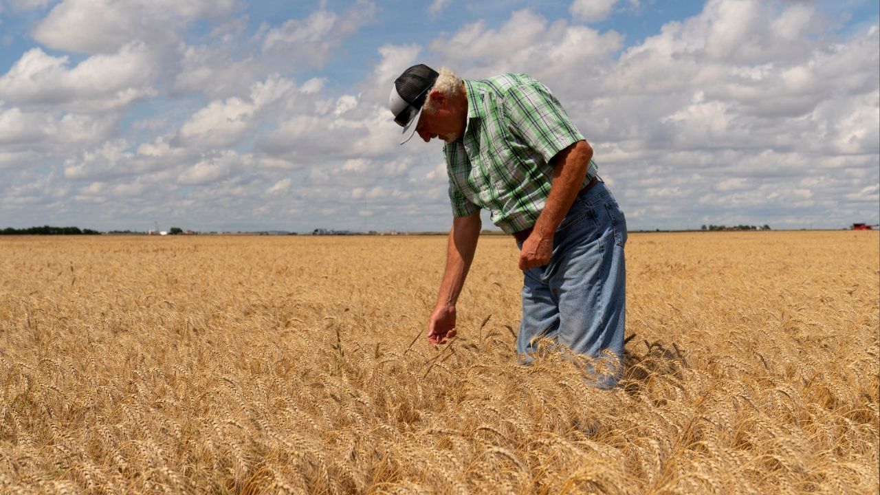 Dennis Schoenhals inspects wheat at his farm in Kremlin, Oklahoma, U.S., June 12, 2025. (Reuters/Nick Oxford)