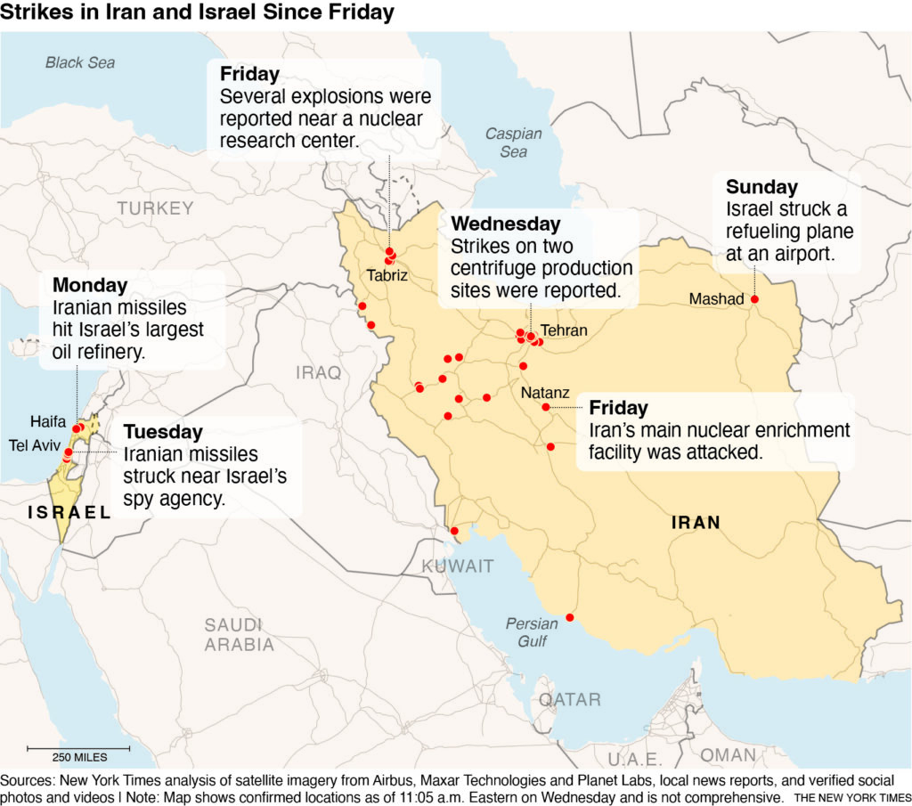- Next steps: Israel has been pressing for the United States to assist in the effort to destroy Iran’s nuclear program and in particular to use its largest bunker-busting bombs — which Israel does not have, nor the planes capable of delivering them — against Iranian nuclear facilities deep underground.