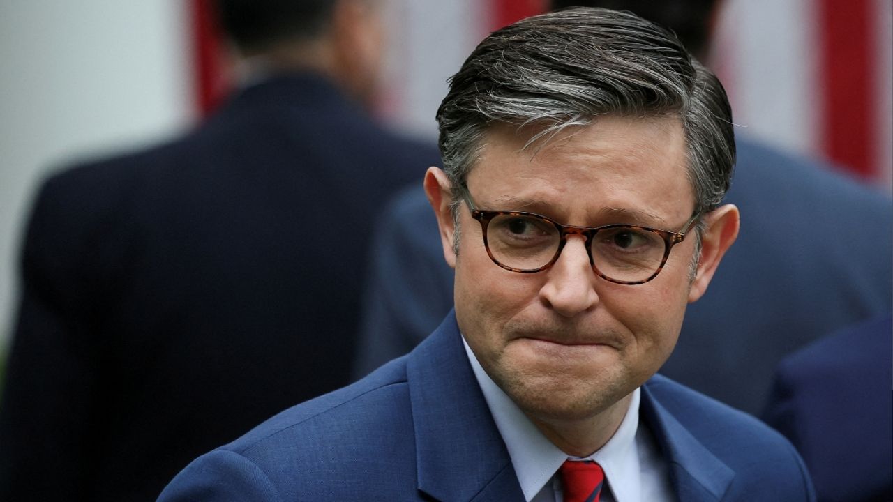 House of Representatives Speaker Mike Johnson (R-LA) looks on, after President Donald Trump delivered remarks on tariffs, in the Rose Garden at the White House in Washington, D.C., U.S., April 2, 2025. (Reuters File)