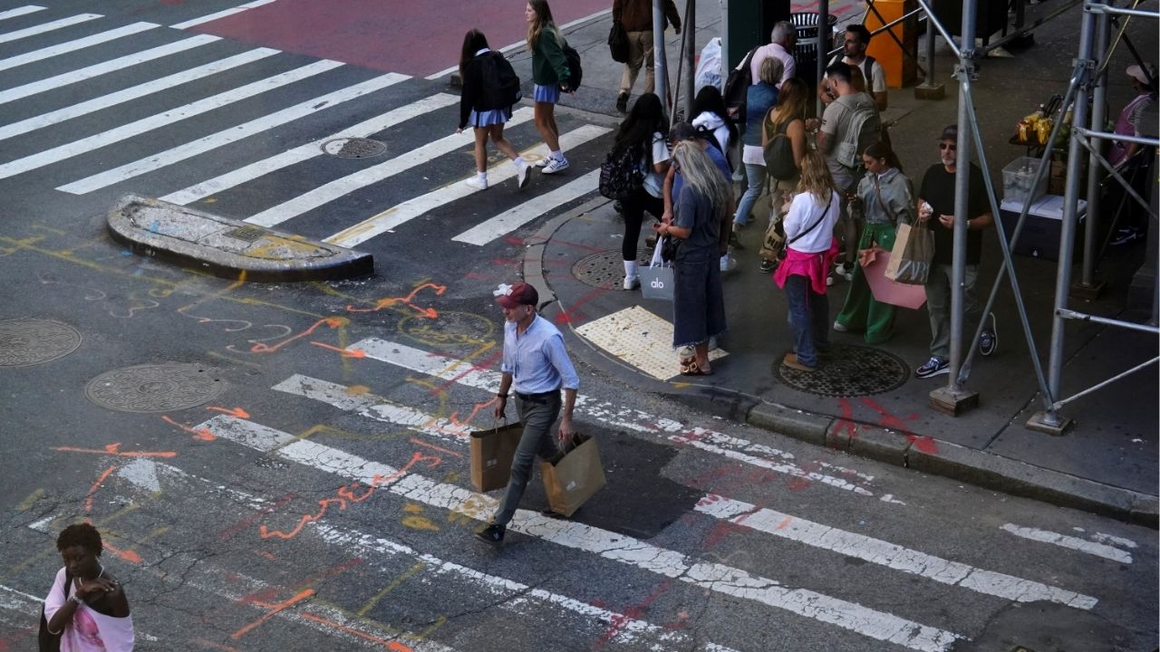 Shoppers cross the intersection of Broadway and Spring Street in the SoHo neighborhood of New York City, U.S., September 21, 2023. (Reuters File)