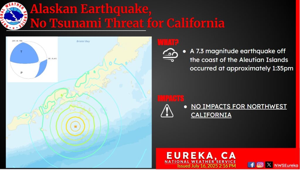 A magnitude 7.3 earthquake struck off Alaska’s Aleutian Islands Wednesday, July 16, 2025, but officials say there is no tsunami threat or impact to northwest California. (Shutterstock)