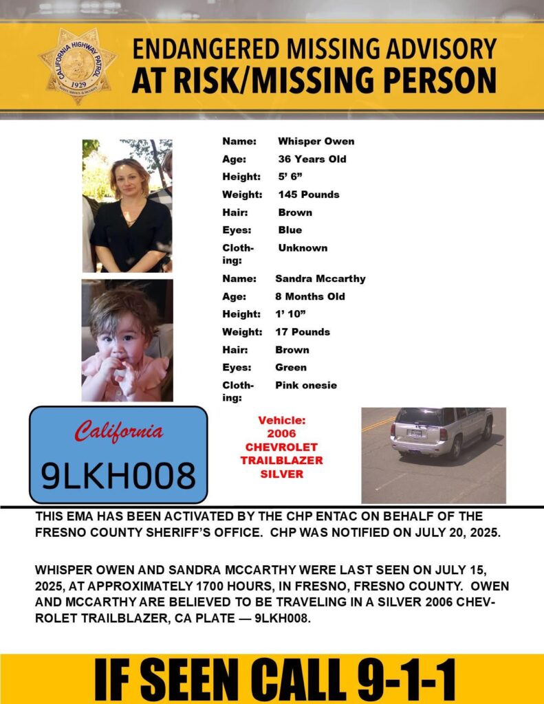 Anyone with information on their whereabouts is urged to contact the Fresno County Sheriff’s Office at (559) 600-3111.