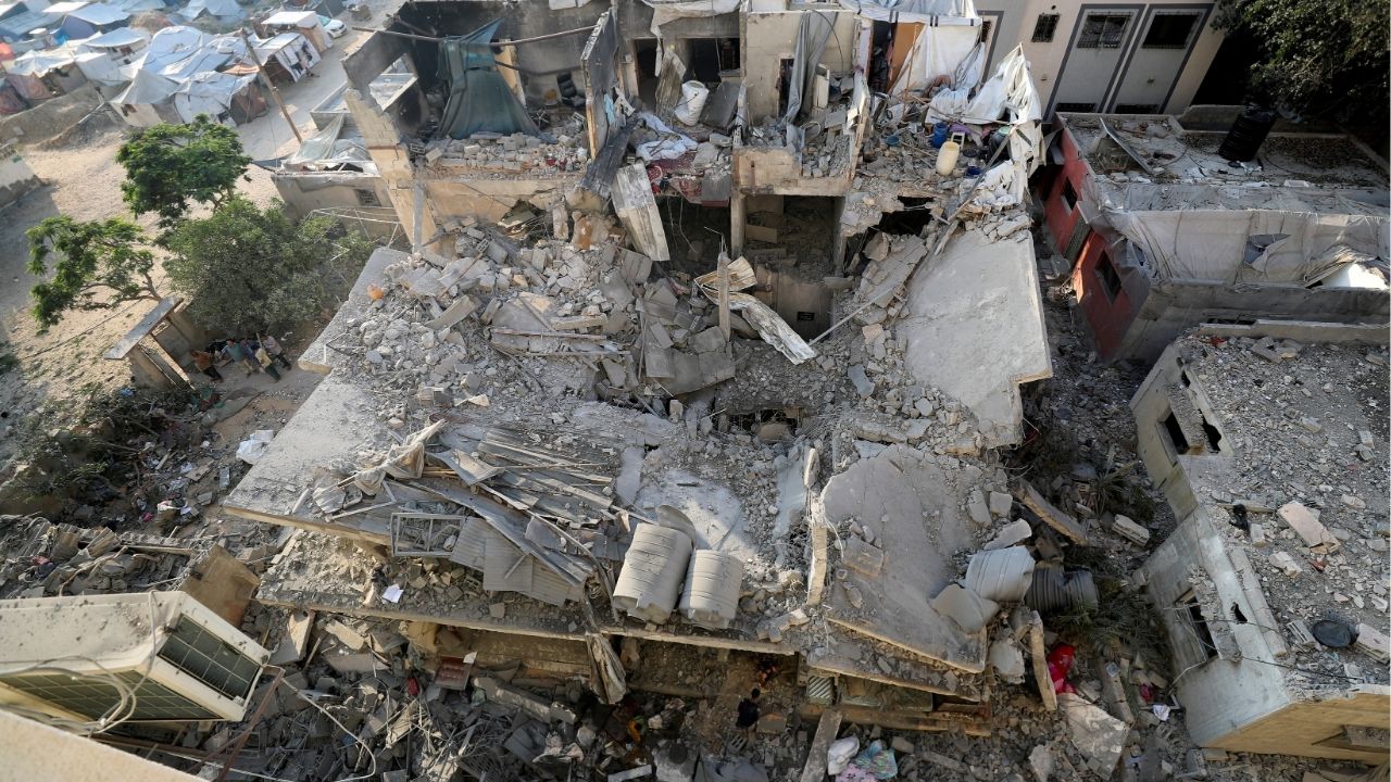 Debris lies at the site of an overnight Israeli air strike on a house, in Gaza City, July 23, 2025. (Reuters/Mahmoud Issa)