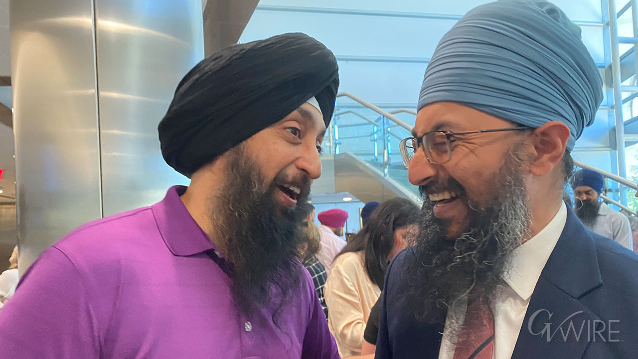 Naindeep Singh, left, seen in 2024 at a celebration for Judge Raj Singh Badhesha, has filed to run for Fresno City Council District 1 seat being vacated by Annalisa Perea in 2026. (GV Wire/David Taub)