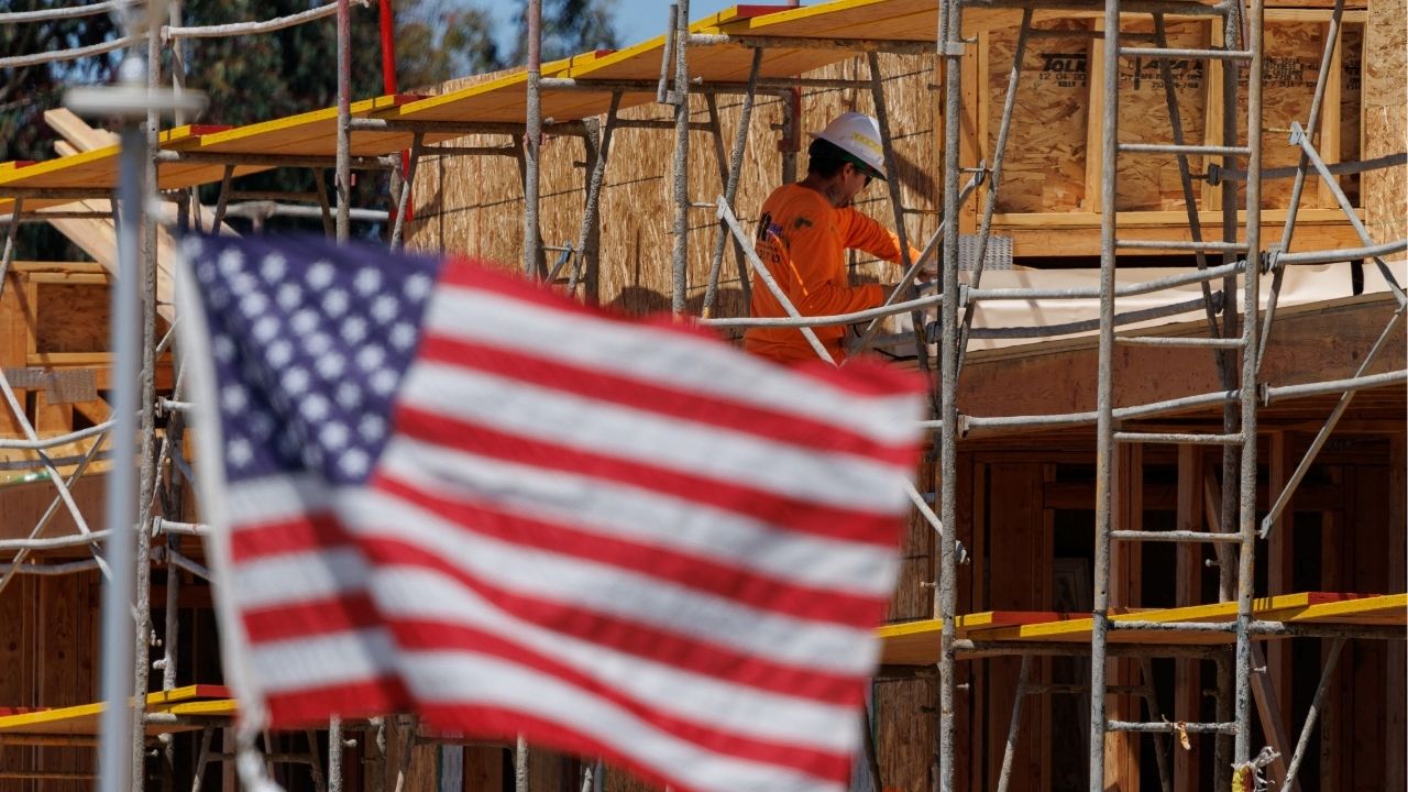 A construction worker is shown at work on a multi-unit residential housing project in Encinitas, California, U.S., July 28, 2025. (Reuters/Mike Blake)