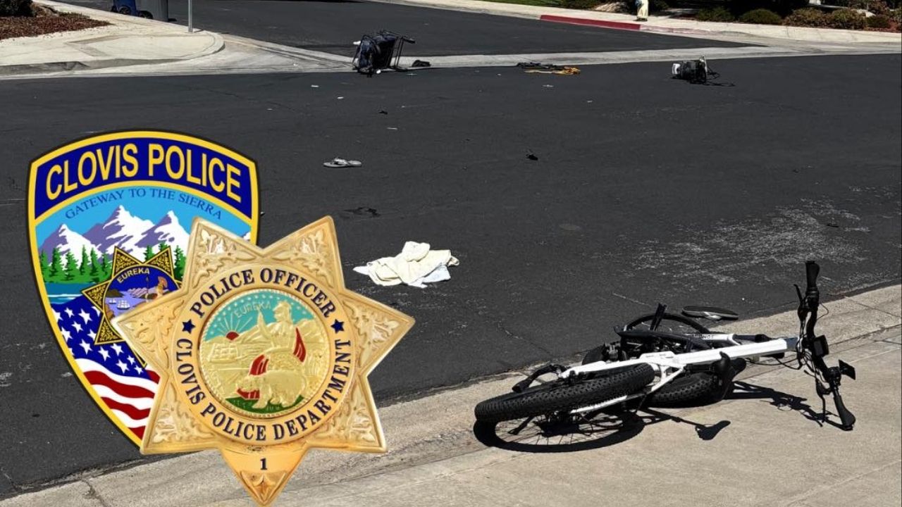 A teenager on an electric bicycle was seriously injured Wednesday August 13, 2025, in a collision with a pickup truck at a Clovis intersection, police said. (Clovis PD)