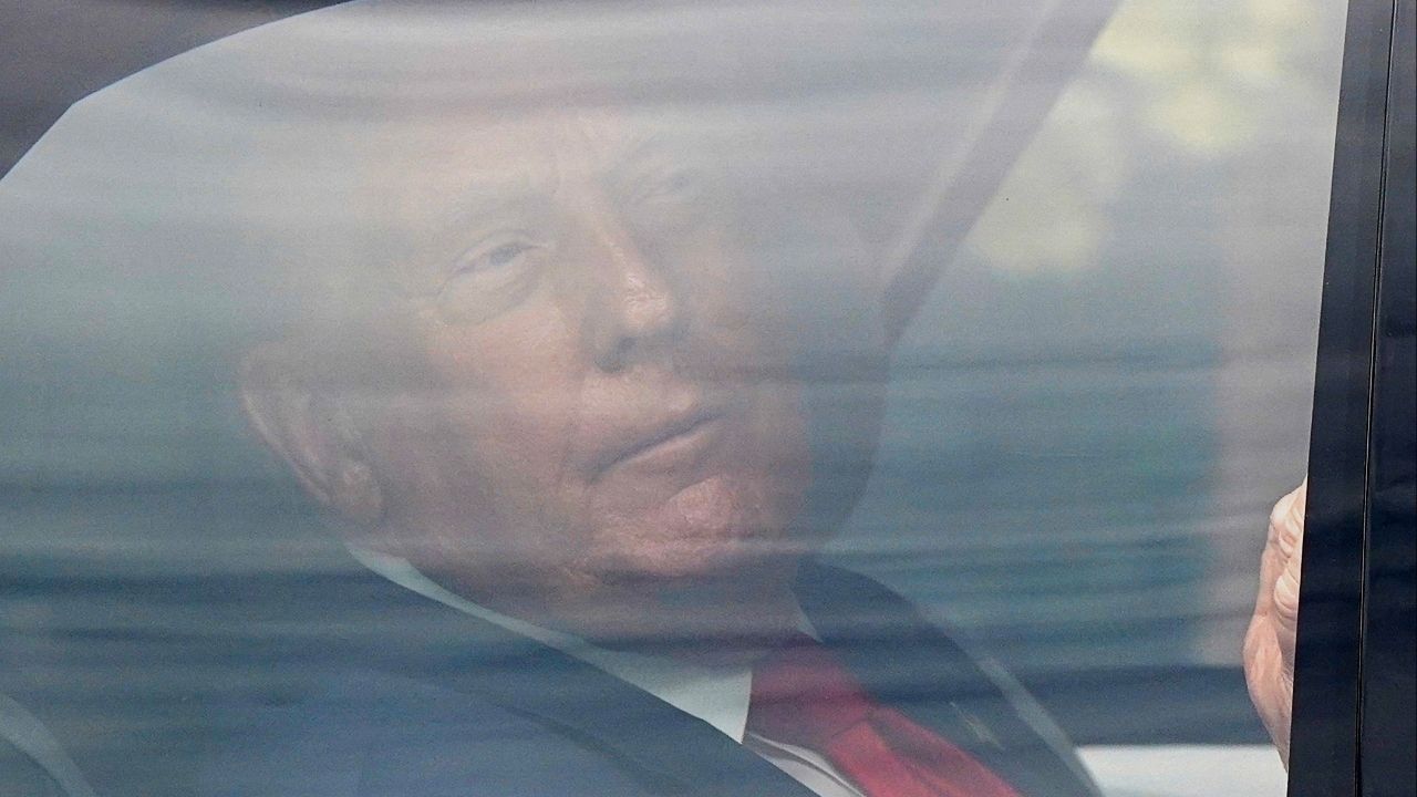 President Donald Trump travels in a vehicle as part a motorcade, as he returns to the White House from a visit to the Kennedy Center, in Washington D.C., U.S., August 13, 2025. (Reuters File)
