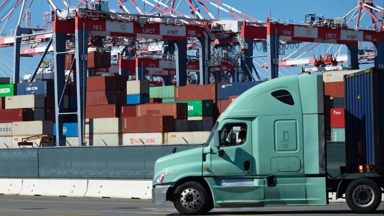 A truck driver leaves with his container from the Long Beach Container Terminal in Long Beach, California, U.S., February 9, 2023. (Reuters File)